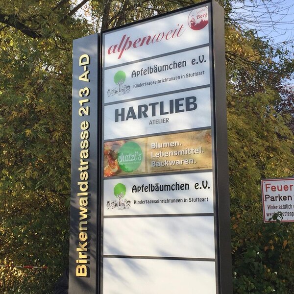 Werbepylone bieten vielseitige Einsatzzwecke, z.B. als Markenbotschafter, Leitsystem, Wegweiser oder Informationsträger. Der Gestaltungsvielfalt sind keine Grenzen gesetzt. Die Fertigung kann sowohl in individueller Bauform oder auch mit Standardprofilen erfolgen.