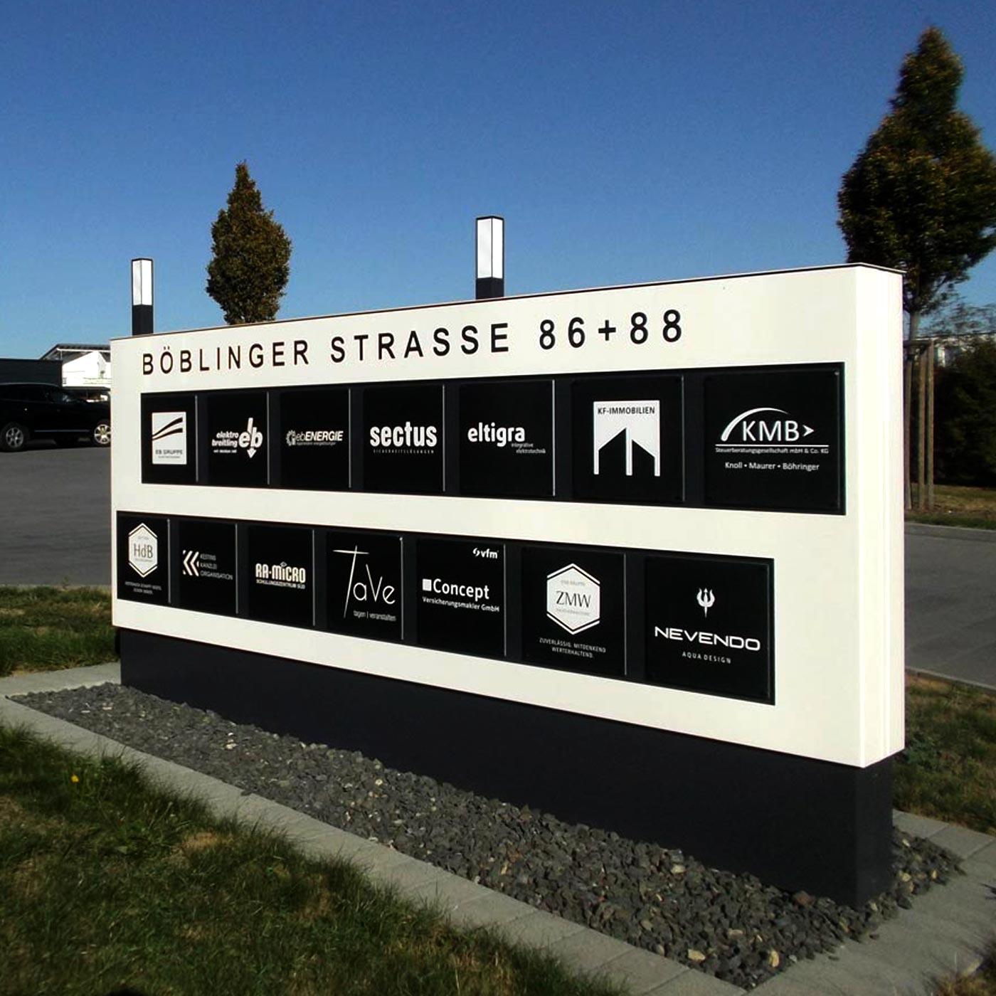 Ein Werbepylon auch Werbestele genannt setzt wichtige Akzente für die Kennzeichnung Ihres Firmensitzes.