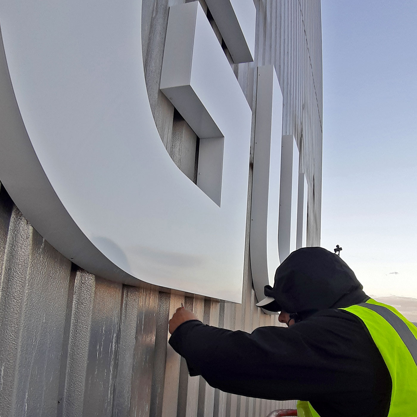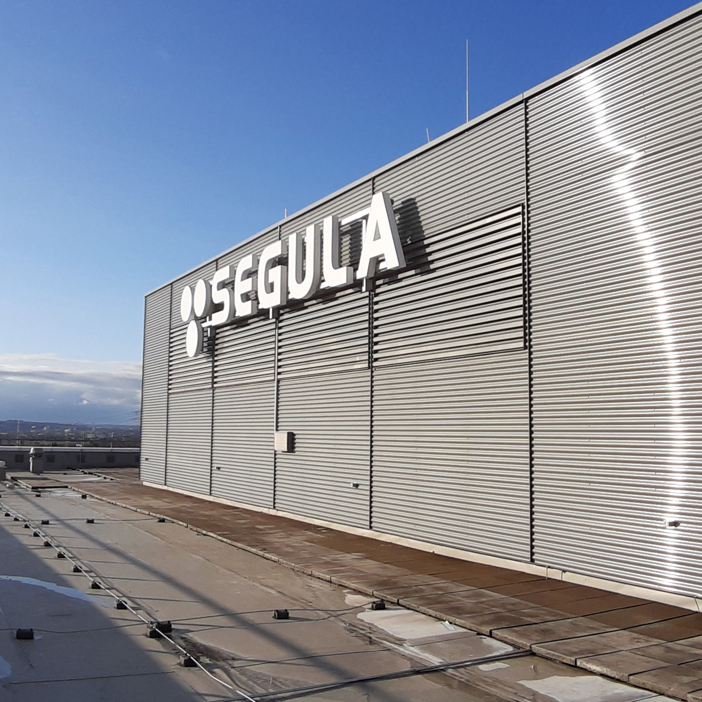 Die Aluminiumgehäuse der Werbepylone mit dem Schriftzug SEGULA wurden dekupiert, das Logo wurde im Gehäuse mit weißem Acrylglas hinterlegt. Inneliegend wurde energieeffiziente LED-Technik verbaut. Die Sockelfundamente für die Pylonenmontage waren bereits vorhanden, dort mussten vorab noch die alten Pylone demontiert werden, die Montagen wurden mit einer LKW Hebebühne und einem LKW Hebkran durchgeführt.