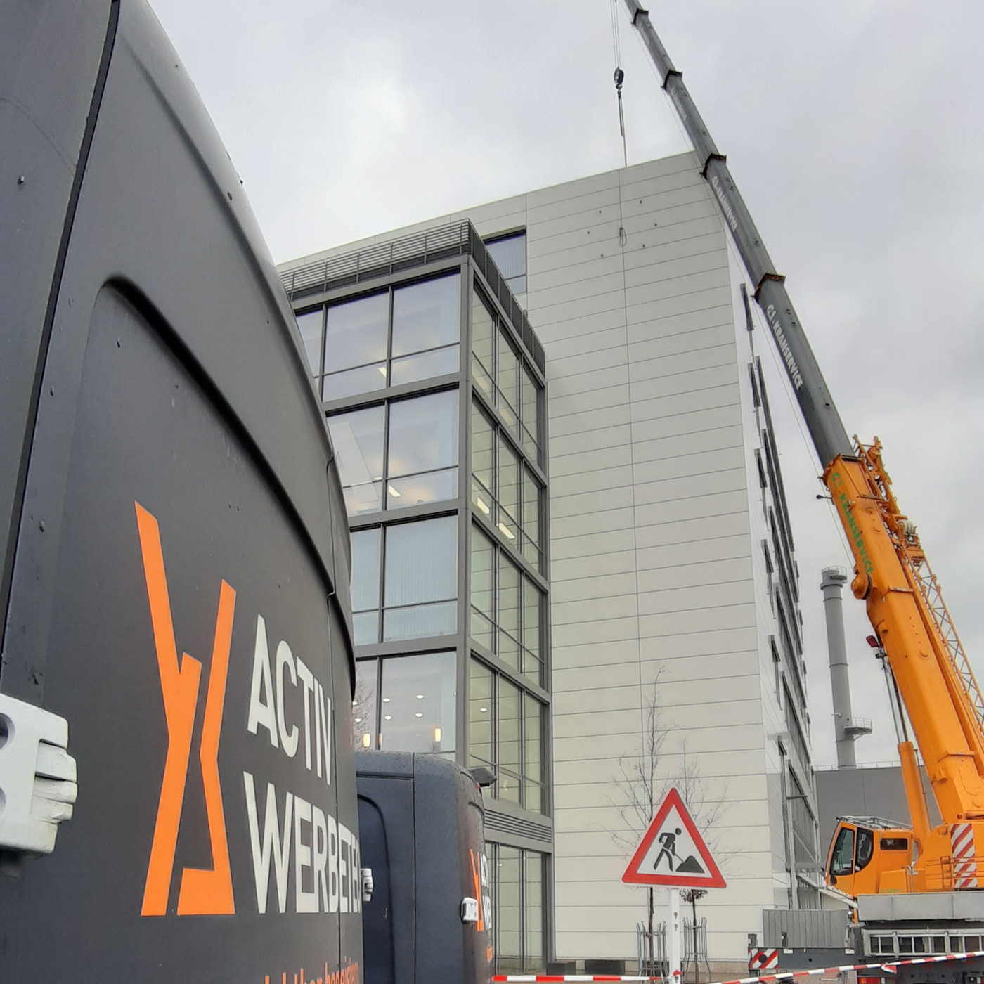 10 Tage vor Baubeginn mussten für alle Montagepositionen bei der Werkssicherung ein detaillierter Verkehrssicherungsplan eingereicht werden, da bestimmte Straßenzüge wegen den Schwerstlastkranen gesperrt werden mussten. Alle Bereiche wurde gemäß eines Verkehrszeichenplanes gesichert. Die umfassende Baustellenabsicherung wurde nach den aktuellen gesetzlichen Vorgaben durchgeführt.