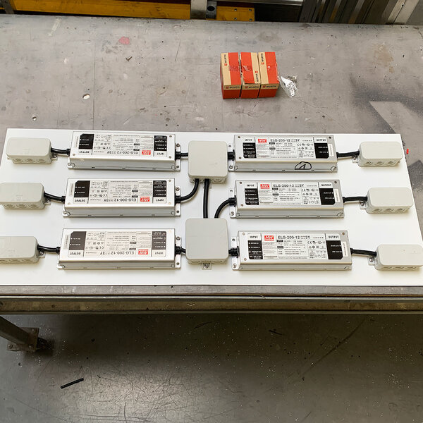 Leuchtschriften, 17m lang.