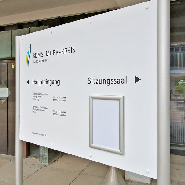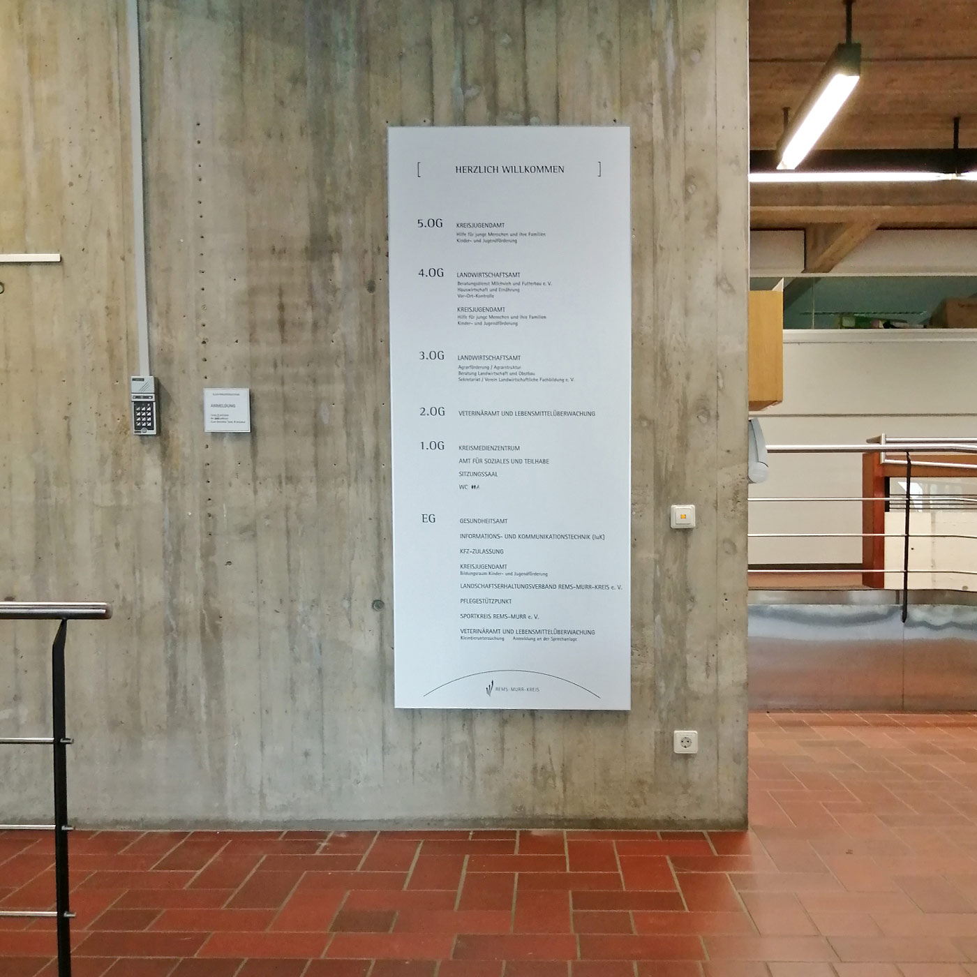 Wir wurden mit der Planung und Umsetzung des Leitsystems im gesamten Gebäude des Landratsamtes beauftragt. Nach der Bedarfermittlung vor Ort wurde Anhand von Plänen das Konzept für die Gestaltung und die Kennzeichnung entwickelt. Ziel war es ein Leitsystem zu konzipieren, das schnell und einfach ergänzt werden kann.