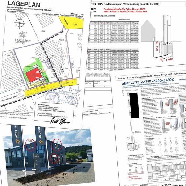 Nach der Gestaltungsphase des Gebäudebrandings wurden alle Werbeanlagen technisch dokumentiert und bei der zuständigen Behörde über einen Bauantrag zur Genehmigung eingereicht.